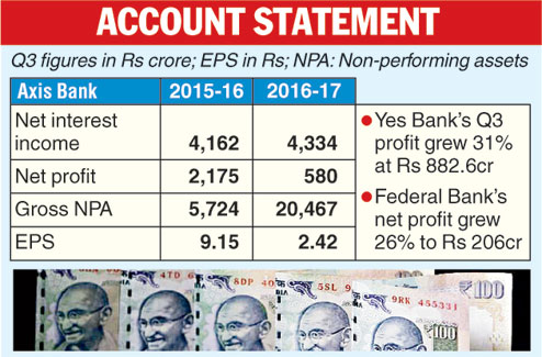Mumbai, Jan. 19: Axis Bank, the country's third-largest private lender, today posted a disappointing set of numbers for the third quarter ended December as its net profit plunged 73 per cent following a sharp rise in provisions.