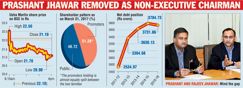 Calcutta, April 25: Prashant Jhawar was toppled as the non-executive chairman of specialty steel maker Usha Martin Ltd in a boardroom coup engineered today by leading banker, the State Bank of India.