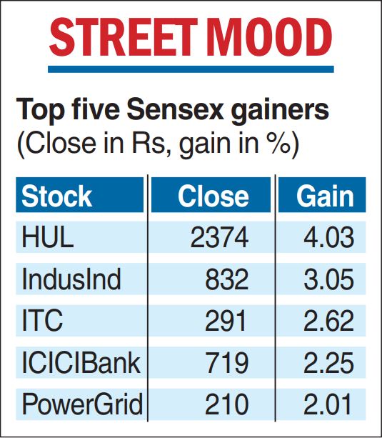 Equity indices regained footing on Monday after a three-session losing streak as investors snapped up banking, FMCG and IT stocks amid a positive trend overseas.