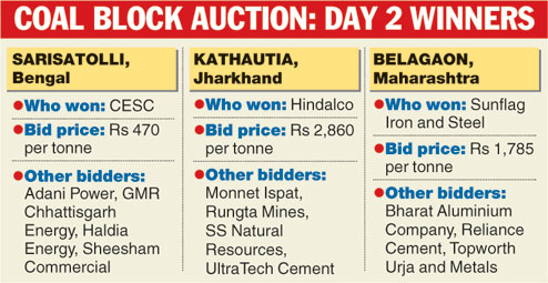 Earlier in the day, Aditya Birla Group's Hindalco Industries bagged the Kathautia block in Jharkhand, bidding at Rs 2,860 per tonne.
