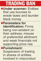 New Delhi, Feb. 8 (PTI): Cracking the whip on entities using the stock markets to evade taxes and launder black money, the Securities and Exchange Board of India has decided to suspend trading in listed companies that are found to be used by such manipulators.