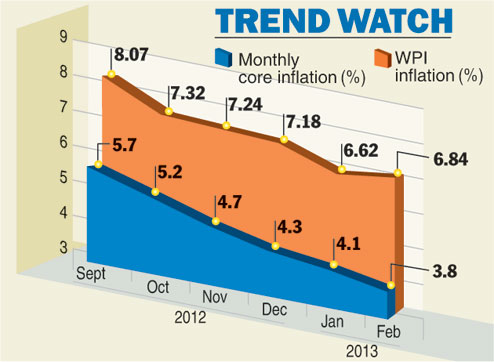 However, the wholesale price index (WPI) rose an annual 6.84 per cent in February, higher than the 6.54 per cent rise estimated by analysts, reflecting the impact of fuel price corrections by the government. Wholesale prices rose 6.62 per cent in January.