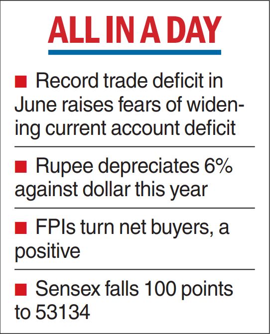 The rupee closed at a record low of 79.37 against the dollar on Tuesday over fears of the widening of the current account deficit (CAD) following an all-time high trade deficit in June.