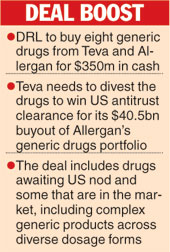 The drugs Dr Reddy's is buying are being divested by Israel-based Teva, the world's largest maker of generic drugs, to win US antitrust clearance for its $40.5-billion acquisition of Allergan's generic drugs portfolio. The sale to Dr Reddy's puts Teva a step closer to closing the Allergan deal.