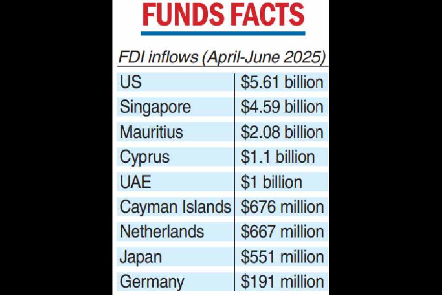 During the period, the US emerged as the largest source of FDI with $5.61 billion against $1.50 billion in April-June 2024-25 despite tariff issues. It was followed by Singapore ($4.59 billion), Mauritius ($2.08 billion), Cyprus ($1.1 billion), the UAE ($1 billion), Cayman Islands ($676 million), the Netherlands ($667 million), Japan ($551 million) and Germany ($191 million).