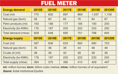 The report claims India’s energy dependence on imports will almost double by 2020.