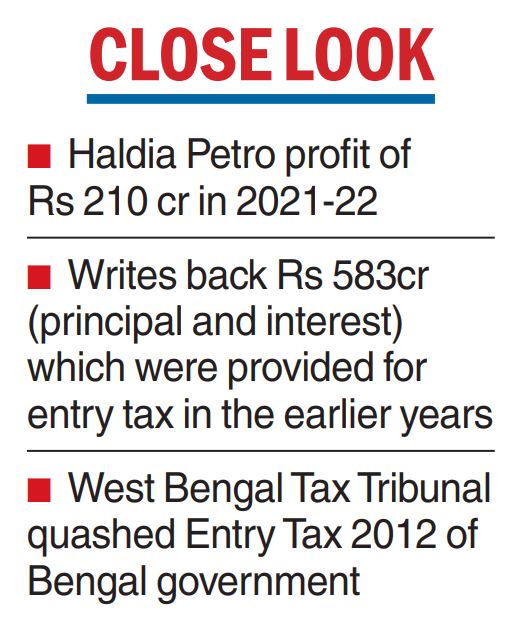 Haldia Petrochemicals Ltd, the flagship company of maverick Bengali entrepreneur Purnendu Chatterjee, posted a Rs 210.1 crore profit on a consolidated basis for the year ended March 31, after writing back provisions made on account of contentious Entry Tax, 2012 imposed by the Bengal government.