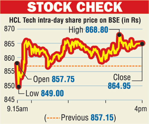 The HCL Technologies scrip closed at Rs 864.95, up 0.91 per cent, from the previous close on the BSE.
