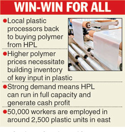 "HPL has come back to production at an opportune time. There is a general scarcity in the polymer market. But Bengal units are not suffering, thanks to Haldia," Ashok Jajodia, secretary of the Indian Plastics Federation, said.