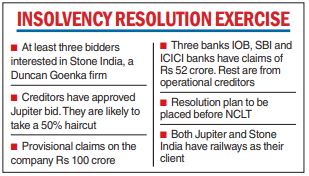 Sources said that around a 50 per cent haircut could be expected on the outstanding dues. There were two key deal drivers — the existing licences and a sizeable factory — which resulted in interest among at least three bidders for Stone India.