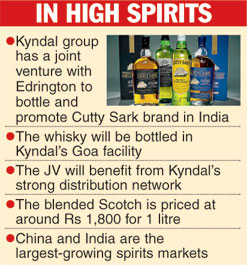 The Kyndal group, which is an importer, manufacturer and distributor of spirit brands in India, has formed a 50:50 joint venture with Glasgow-based Edrington to bottle and promote Cutty Sark - a blended Scotch brand - in India