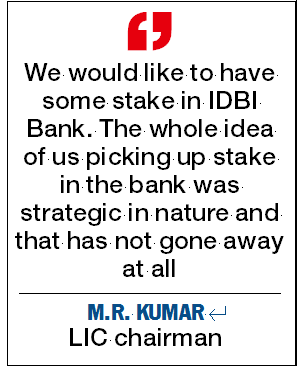Kumar said it was too early to say the stake LIC wants to retain in IDBI Bank. A clearer picture will emerge after the department of investment and public asset management (Dipam) begins the disinvestment exercise in the bank.