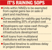 The tax break will be granted in case of re-investment of the sale consideration within three years for the purchase of new plant and machinery in any other unit located within the same NIMZ or another zone. Besides, NIMZs will be eligible for viability gap funding, which cannot exceed 20 per cent of the project cost.