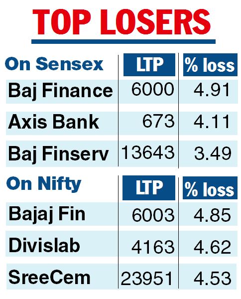 The 30-share Sensex opened lower at 54928.29 and fell 1115.48 points to an intra-day low of 54586.75. It later settled at 54835.580 — a loss of 866.65 points or 1.56 per cent. Similarly, the broader Nifty 50 cracked 271.40 points or 1.63 per cent to finish at 16411.25.