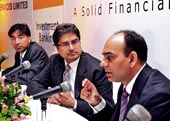 | Motilal Oswal (right) with other officials in Mumbai on Monday. (Fotocorp) |