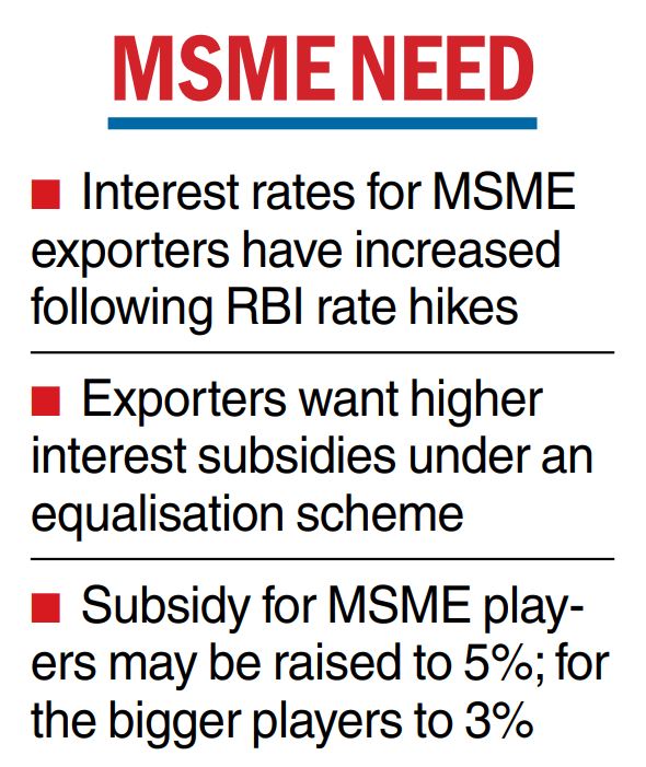 The government is considering a proposal to offer higher subsidy on interest rates to MSME exporters to protect them from the high cost of capital.