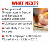 The two plants, employing around 400 workers at Shyamnagar in Bengal and Baripada in Odisha, are under suspension of work from the middle of 2015 because of a cash crunch. The court has named a liquidator to handle the process which may take between six months and a year. The process will involve public announcement, claim submission and the disposal of assets.