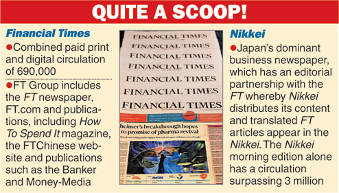 London/Paris, July 23 (Agencies): Japanese media group Nikkei agreed on Thursday to buy the Financial Times from Britain's Pearson in a $1.3-billion deal that brings together two leading financial news operations from Europe and Asia.