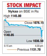 Shares of FSN E-Commerce Ventures Ltd, the Nykaa parent, slid up to 8 per cent on the bourses as nervousness crept in ahead of the expiry of the lock-in period for its pre-IPO investors.