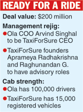 In a statement, Ola said both the companies would continue to operate as separate entities. Ola chief operating officer Arvind Singhal will take over as the chief executive officer of TaxiForSure. The founders of TaxiForSure - Aprameya Radhakrishna and Raghunandan G. - will have advisory roles.