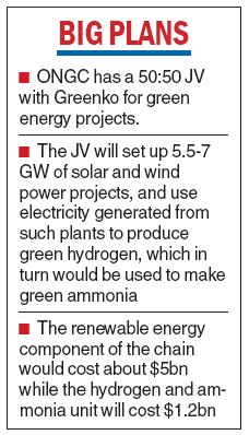 India’s top oil explorer ONGC and its partners will invest $6.2 billion (Rs 50,000 crore) in green energy projects to produce carbon-free hydrogen and green ammonia as part of an ambitious decarbonisation drive, officials said.