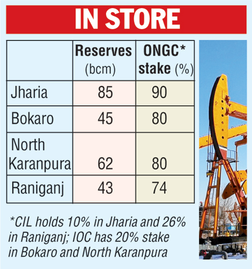 ONGC is the operator of the Bokaro block as well as the North Karanpur blocks with 80 per cent interest. Indian Oil holds the remaining 20 per cent. It is also the operator of the Raniganj (north) block with a 74 per cent stake, while Coal India holds the rest. In Jharia, ONGC holds 90 per cent and Coal India the remaining 10 per cent.
