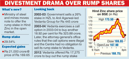 In January 2012, Vedanta, which holds the shares bought by Sterlite, had offered Rs 17,275 crore to buy out the remaining stake of the government in Hindustan Zinc and Balco, reigniting the government's interest in ordering a rump stake sale.