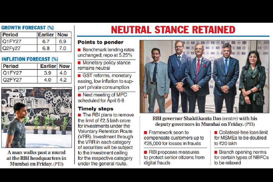 The Reserve Bank of India (RBI) on Thursday left the policy repo rate unchanged at 5.25 per cent after the first meeting of the Monetary Policy Committee (MPC) in 2026, while retaining a neutral stance.