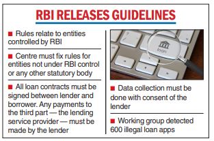 Accepting some of the recommendations made by a working group, the RBI said the guidelines were prepared on the principle that the lending business can be carried out only by entities that are either regulated by the RBI or entities permitted to do so under any other law.