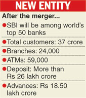 New Delhi, April 1: Five associates and the Bharatiya Mahila Bank became part of the State Bank of India (SBI) today, catapulting the country's largest lender to among the top 50 banks in the world.