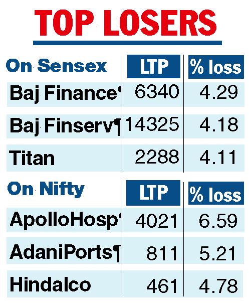 Interest rate sensitive stocks suffered the most with auto, real estate and banking stocks witnessing heavy selling pressure. Bajaj Finance was the biggest loser in the Sensex pack, tumbling 4.29 per cent. it was followed by Bajaj Finserv, Titan, IndusInd Bank, HDFC Bank, Maruti and RIL.