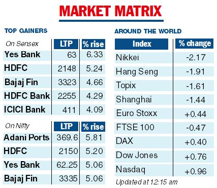 Banking, finance, realty and capital goods stocks led the gains; from the Sensex pack, 22 closed the day with gains led by Yes Bank, HDFC, Bajaj Finance and HDFC Bank.