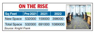 Data compiled by Knight Frank showed the city has over a million square feet with flexible office space operators by the end of 2022 (See chart) compared with about 0.5 million square feet before 2021.