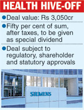 Mumbai, March 4: Siemens is selling its healthcare undertaking to Siemens Healthcare Pvt Ltd (SHPL), a subsidiary of Siemens AG, for Rs 3,050 crore as the German giant seeks to bring its healthcare business under a separately managed company to give it a greater focus.
