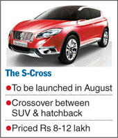 A crossover combines features of a sports utility vehicle with those from a hatchback. Analysts expect the S-Cross to be priced between Rs 8 lakh and Rs 12 lakh and compete against Renault Duster and Ford EcoSport.