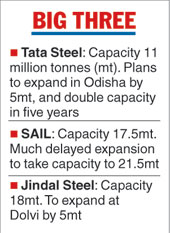 Tata Steel operates a 9.7-million-tonne plant at Jamshedpur in Jharkhand and another 3-million-tonne unit at Kalinganagar, Odisha. The company has 3,000 acres in Odisha where expansion is possible.