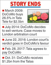 New Delhi: NTT DoCoMo has received $1.2 billion or 144.9 billion yen from Tata Sons, bringing the curtain down on a two-year old dispute over their telecom joint venture.