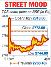 The stock fell 0.56 per cent to end at Rs 2,772.90 on the BSE. During the day, it dipped 1.59 per cent to Rs 2,744. On the NSE, the shares of the company lost 0.50 per cent to close at Rs 2,776.35.