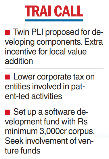 The Telcom Regulatory Authority of India (Trai) has proposed a concurrent PLI scheme focussing on components and sub-assembly manufacturing to strengthen the local supply chain.