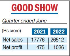 The auto major had posted a net profit of Rs 475 crore in the Covid-hit April-June quarter of the last fiscal. Net sales rose to Rs 26,512 crore in the June quarter compared with Rs 17,776 crore in the same period of 2021-22. Performance in the first quarter of the last year was affected by Covid-related shutdowns and disruptions, and hence comparison with the first quarter this year is not on a like-to-like basis, MSI said in a statement.