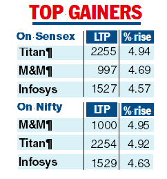 It was followed by Mahindra & Mahindra, Infosys, Larsen & Toubro, Tech Mahindra and HCL Technologies which gained up to 4.69 per cent.