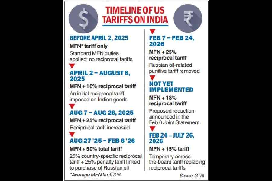 As a result, around 55 per cent of India’s merchandise exports to the US will attract a 15 per cent plus MFN (most favoured nation) tariff (3 per cent on average), which will still be lower than the 25 per cent India is paying now.