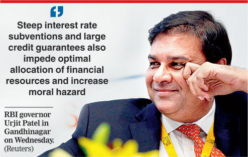 "Steep interest rate subventions and large credit guarantees also impede optimal allocation of financial resources and increase moral hazard," Patel said while addressing the Vibrant Gujarat Global Summit at Gandhinagar.