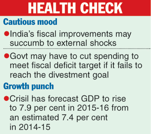 Mumbai, April 13: Standard & Poor's (S&P) today warned that fiscal improvements by India might succumb to external shocks and the Centre could again resort to spending cuts to meet the fiscal deficit target if it failed to reach the selloff goal.