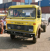 The trucks, manufactured by Tata Motors at its Jamshedpur and Pantnagar plants, were shipped to Bangladesh's Mongla port from berth number 2 of Netaji Subhash Dock of Calcutta Dock System in vessel M.V. IDM Doodle. The voyage is expected to be complete within a day.