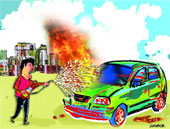 To sum things up, remember that prevention is better than trying a cure. Make sure the car is maintained on a regular basis — check all the electricals, including wiring and the insulation. If you have to put in extra features that are a drain on the electrical system, have the car manufacturer’s workshop do it, failing which, go to a competent, qualified garage. Make sure the fuel lines are in top shape and replace them regularly. Buy a fire extinguisher and keep it within reach, not in the boot or under-bonnet area, as you may not be able to get to it in time. Finally, be prepared to break your way out of the car — get that hammer and keep it within easy reach. Above all, try and stay calm, knowing that you ARE equipped to deal with fire. As for me, you can bet I’ll be making a trip to the markets for that fire extinguisher!