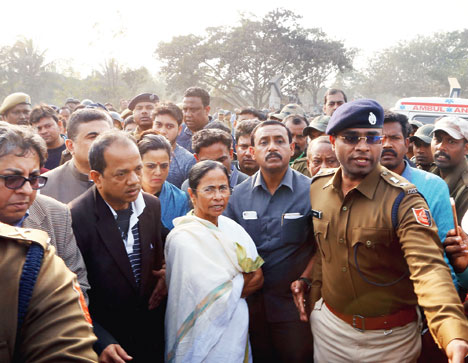 Chief minister Mamata Banerjee at the accident spot. Picture by Chayan Majumdar