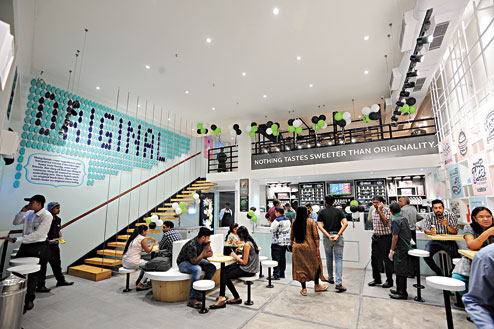 Calcutta got the first scoop in February at the Sarat Bose Road outlet. The chocolate is sourced from Belgium, vanilla from Madagascar and strawberries from Poland. Next, they opened in Quest — a 40-seater cafe done up in red and black, serving all the flavours that make this brand famous.