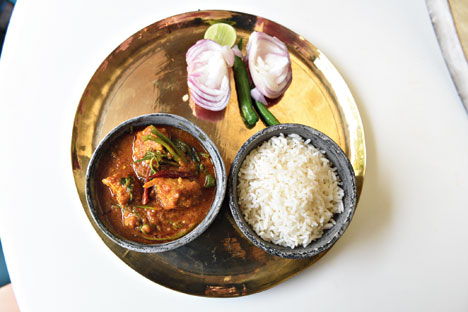 I am kind of biased about food from Bengal. And supported by The Park Hotels, I am venturing into rediscovering the regional food in our country, to bring them into our kitchens. Santhals are a tribe in Bengal and we had created this dish last year for a bespoke meal. It is a very slow-cooked dish made with all fresh ingredients; they don’t use fine spices. They only use whole spices, crushed in a rustic way. There are hardly any tomatoes in it, only a mix of onion, garlic