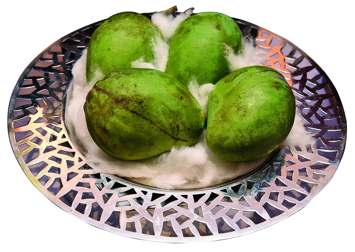 Handle with care. Pluck carefully, when it is on the verge of ripening. Don't let the fruit fall to the ground. Place it on a bed of cottonwool. Avoid holding it for too long - lest the warmth of the palm hastens ripening. Change sides every couple of hours. Peel skin with care and don't let the fingers leave any impression. Use a sharp wooden knife to cut, instead of a regular one.